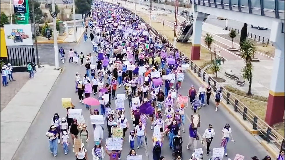 En Tlaxcoapan y Tizayuca, Hidalgo con pancartas y vestidas de morado contingentes de mujeres avanzaron por las calles para exigir una vida libre de violencia, en el marco del 8 de marzo, Día Internacional de la Mujer.